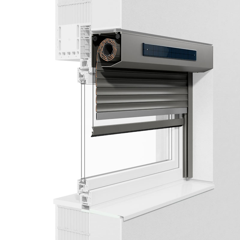 Sie können Ihren motorisierten ROMA Sonnenschutz auch mit Solarantrieb und Speicherakku betreiben. Das Solarmodul in der neuen Ausführung "Somfy io Funk" oder in der bekannten Ausführung „Elero Funk“ lässt sich, je nach Bausituation, direkt auf den Kasten oder an die Hauswand montieren.